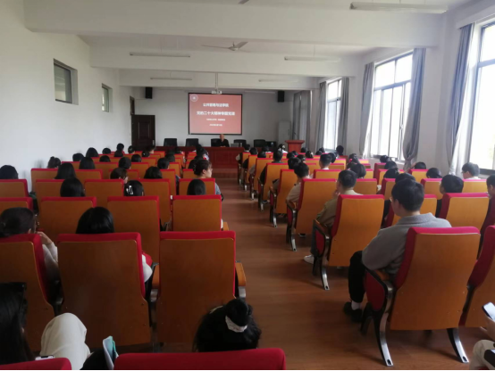 在学院学术报告厅组织党的二十大精神专题党课,特别邀请马克思主义学院教授阮超群博士作专题辅导报告,学院研究生、本科生党支部在校党员聆听报告。