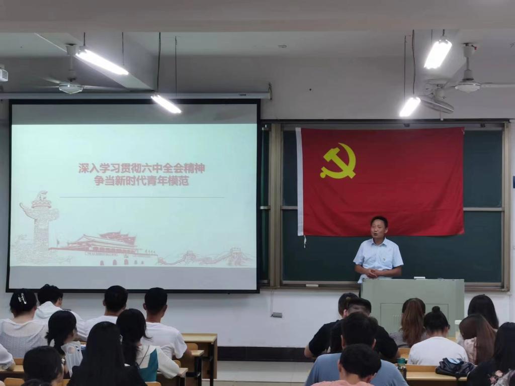 党委书记胡正友专门为研究生党支部党员师生和部分入党积极分子作了题为“深入学习贯彻六中全会精神,争当新时代青年模范”的专题党课。党课在秀山校区汇文楼D栋110教室举行,研究生党支部书记卢晨曦主持党课。