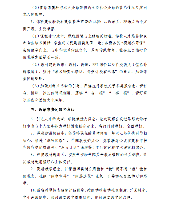 关于把好学院人才引进及课程和教材建设政治关的实施办法