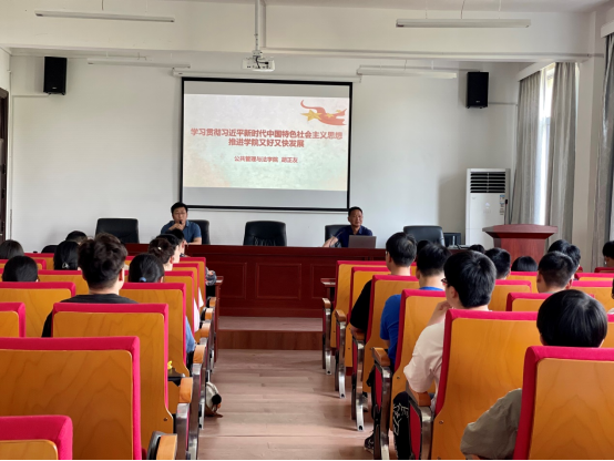 胡正友以《学习贯彻习近平新时代中国特色社会主义思想 推进学院又好又快发展》为题,宣讲了习近平新时代中国特色社会主义思想的基本内容、党的二十大精神、习近平总书记考察安徽重要讲话指示精神等,强调党员同志们要坚持学思用贯通、知信行统一,深刻领会习近平总书记关于教育和人才的重要论述,立足学院实际,落实“立德树人”根本任务,培养优秀高素质公共管理与法学人才,在依法治国、社会治理、社会保障、劳动教育等方面加强学习、积极研究,勇于实践,让习近平新时代中国特色社会主义思想在学院落地生根,促进学院又好又快发展。