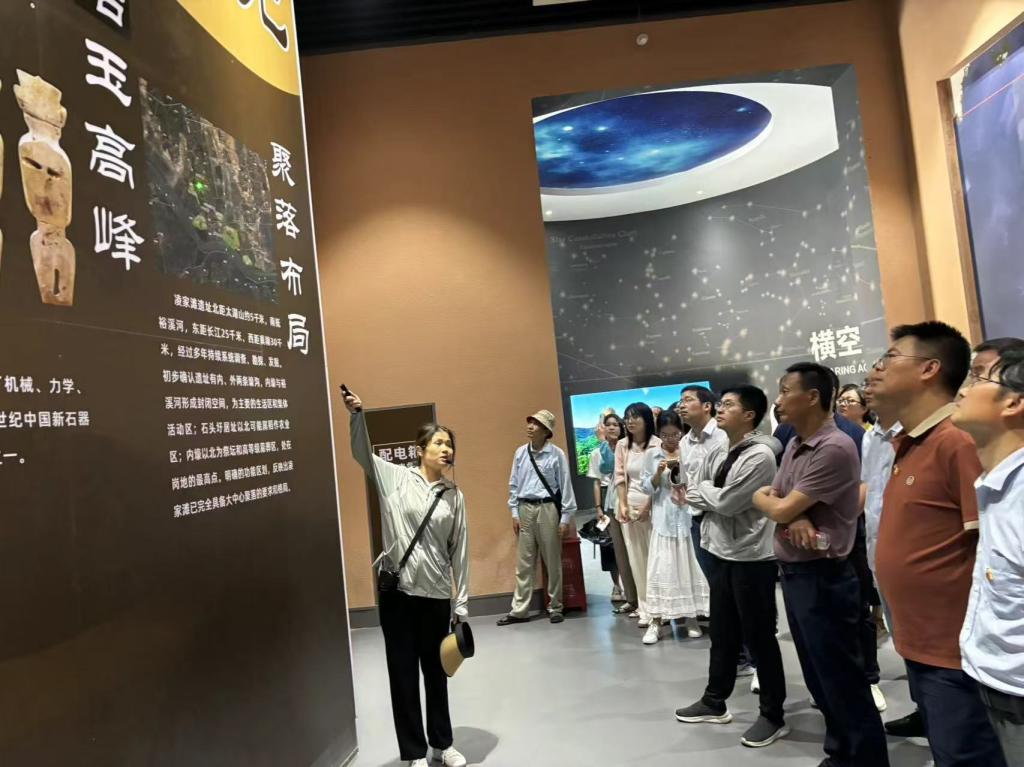 在凌家滩考古遗址公园,师生们先后来到研学基地、墓葬祭祀区和数字展示区,通过倾听讲解员讲解凌家滩考古公园出土的一系列玉文物,近距离观摩充满神秘色彩的玉龙、玉人、玉猪等,深入了解“凌家滩文化”在世界上突出的学术价值和文化价值,感受到中华文明的源远流长、博大精深。