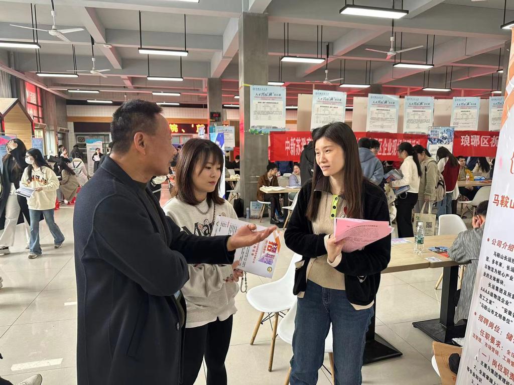 党委书记胡正友,党委副书记、副院长周浩然和毕业班辅导员深入学校招聘会开展访企拓岗促就业活动。