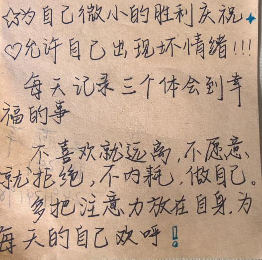活动以“墨香抚心,筏韵传情”为核心主题,吸引了众多同学的热情参与。同学们纷纷用彩色便签纸写下自己的焦虑和对自己的期待。这种便捷的心理交流方式,以其独特的形式,将同学们内心深处的感受与想法迅速传递给他人。心理便签不仅成为同学们沟通的桥梁,更促进了大家相互之间的理解与共鸣。通过此次活动,许多同学表示他们学会了如何更好地表达自己的情感,也深刻体会到了心理健康的重要性。