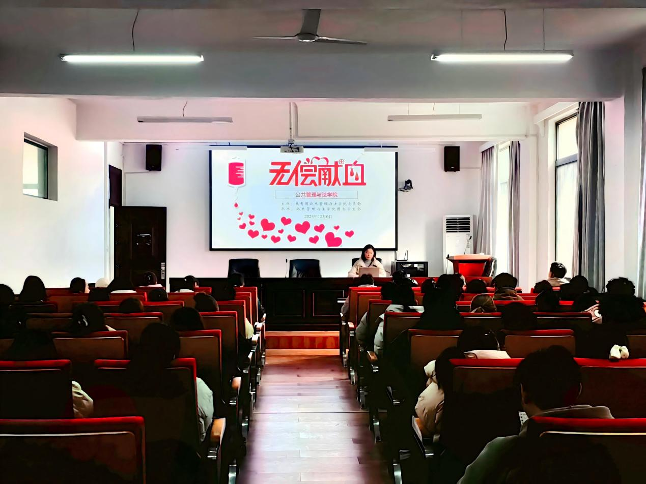 在公法楼301学术报告厅成功举办无偿献血主题讲座,学院23级辅导员朱玲老师受邀担任主讲,90余名师生共同参与这场充满人文关怀的公益课堂。