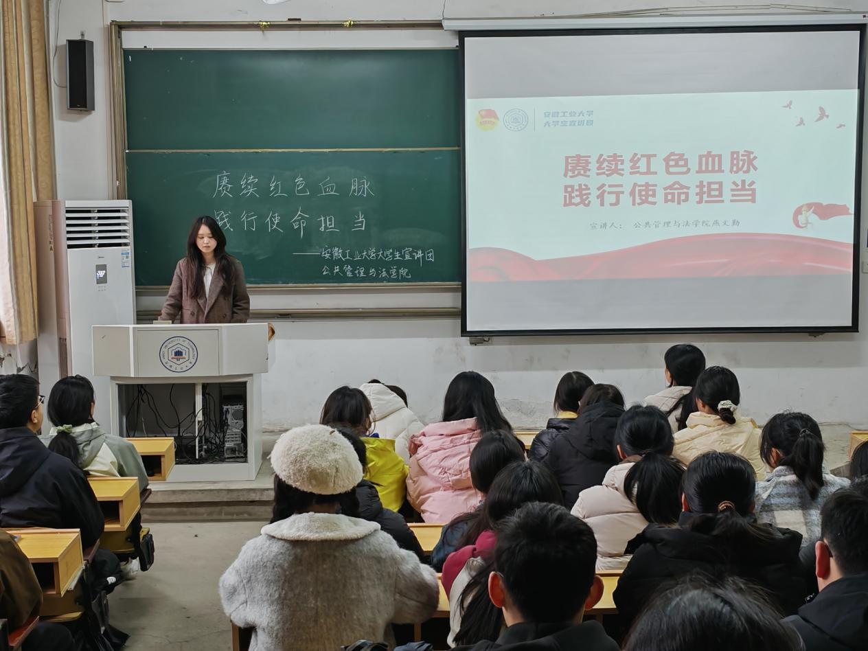 为进一步引导广大青年学习贯彻党的二十届三中全会精神,了解习近平总书记在全国教育大会上的重要讲话精神,校第九届优秀学子宣讲团成员燕文勤于3月3日在佳山校区教一115教室开展“赓续红色血脉,践行使命担当”主题宣讲活动,91直播
