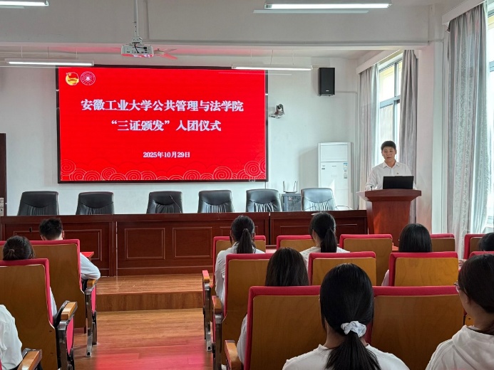 团委组织部于2025年10月29日在公法楼310成功举办了新发展团员入团仪式活动。院团学工作负责人钱前,全体新发展团员和部分老团员代表参加了本次活动。