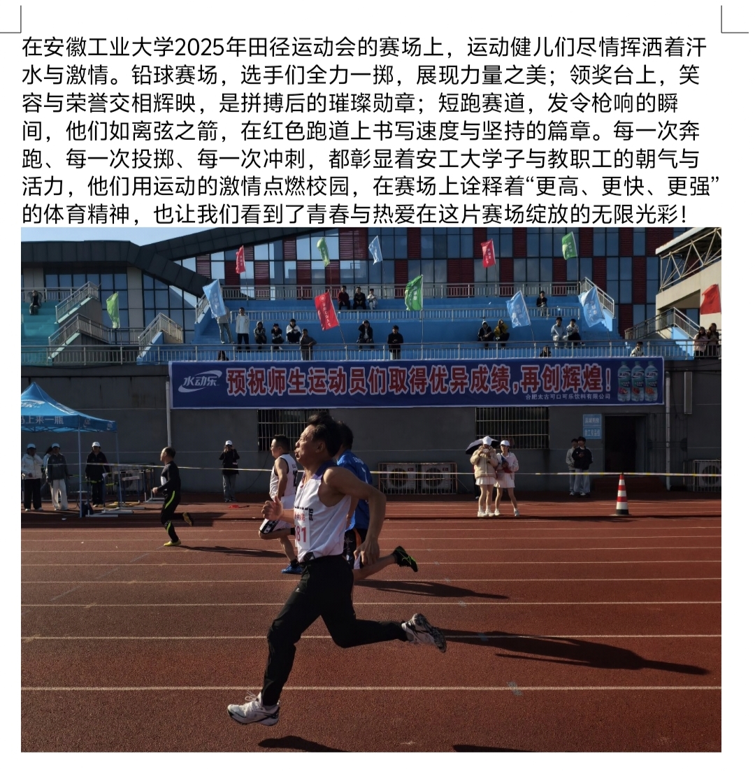 运动员在赛场上的飒飒英姿,并配字上传至活动群中。同学们热情投入活动,在为赛场健儿助威喝彩的同时,以镜头定格无数动人画面——有胜利时的相拥,也有失利后的搀扶;有专注的神情,也有挥洒的汗水。每一张照片背后,是观察、是理解、也是共鸣。通过真诚的影像记录与文字诠释,他们不仅留存了赛事的精彩,更凝聚了集体的温度,让团结、拼搏与友爱的精神在光影中永恒闪耀,充分展现了当代青年善于发现、勇于表达、乐于共享的崭新风貌。