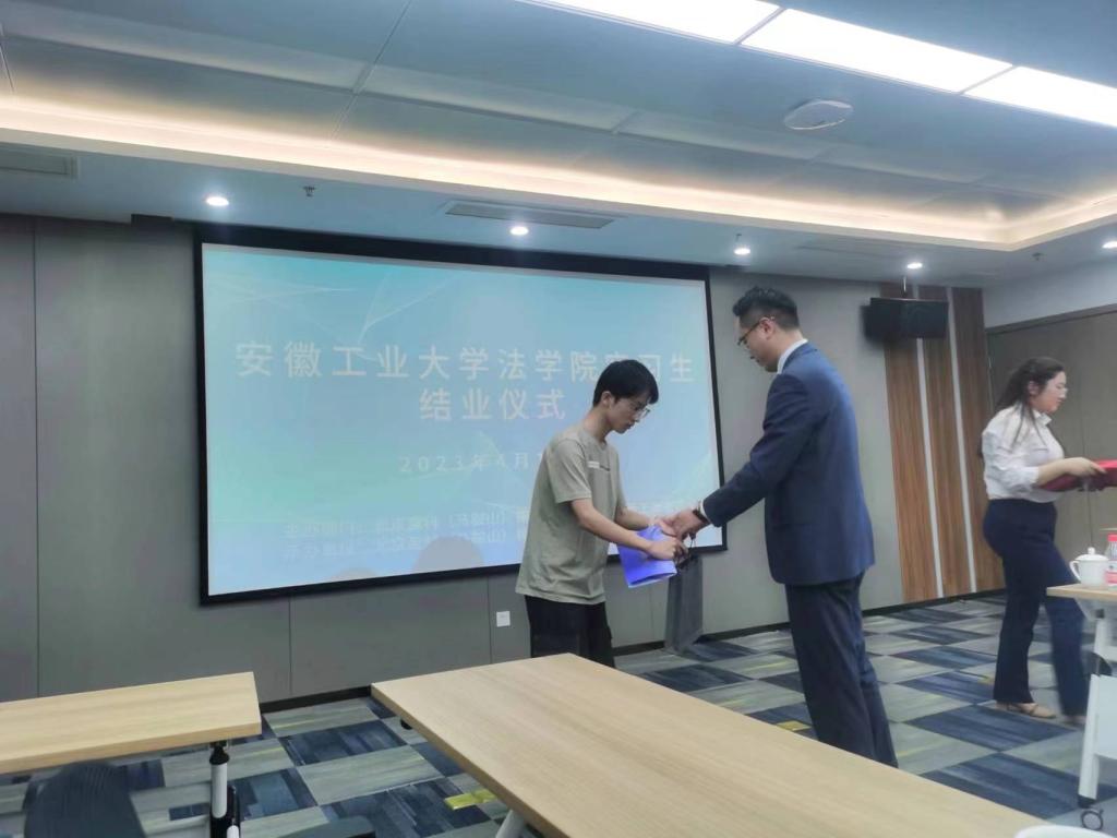 法学系主任徐刚、党支部书记戚枝淬应邀参加了结业仪式。仪式上,盈科所指导老师代表及实习学生代表分别进行了发言。结业仪式上双方还就加强进一步深化校企合作进行了交流。