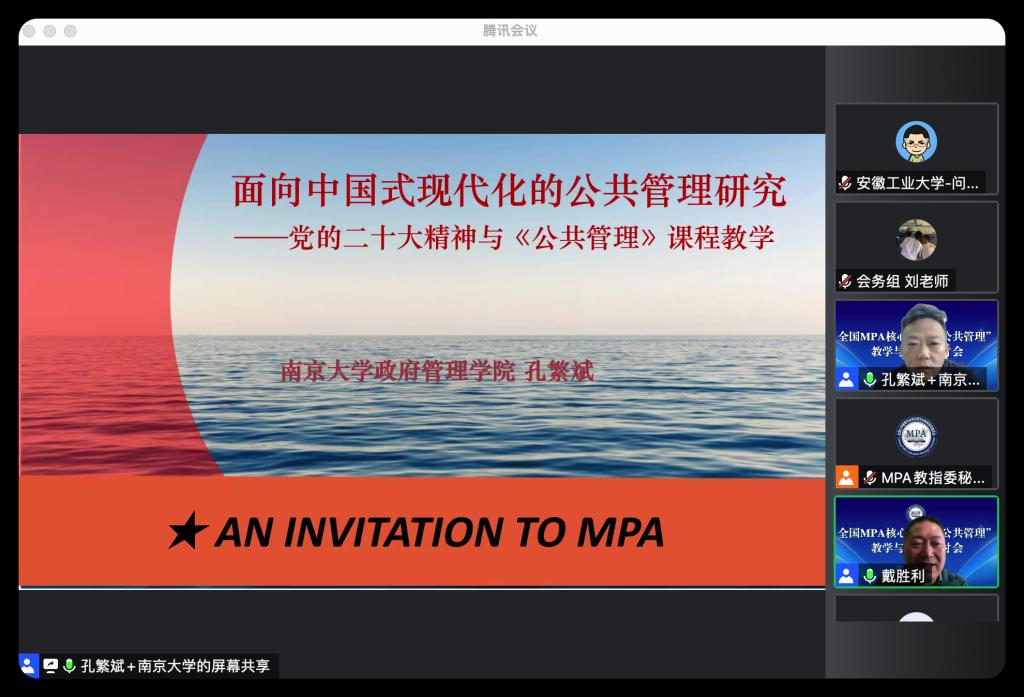 为学习贯彻落实党的二十大精神,持续优化公共管理教学,在公共管理研究生教育中推广案例教学方法,全国公共管理专业学位研究生教育指导委员会通过腾讯会议于2022年12月3日至4日举办了全国MPA核心课程“公共管理”教学与案例研讨会。全国共有257名教师相聚云端,91直播