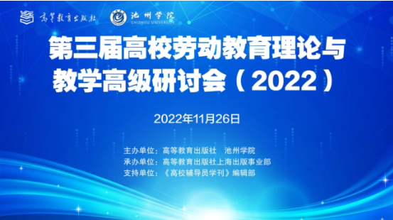 2022年11月26日,高等教育出版社与池州学院举办第三届高校劳动教育理论与教学高级研讨会(2022),会议采取线上与线下相结合的形式召开。