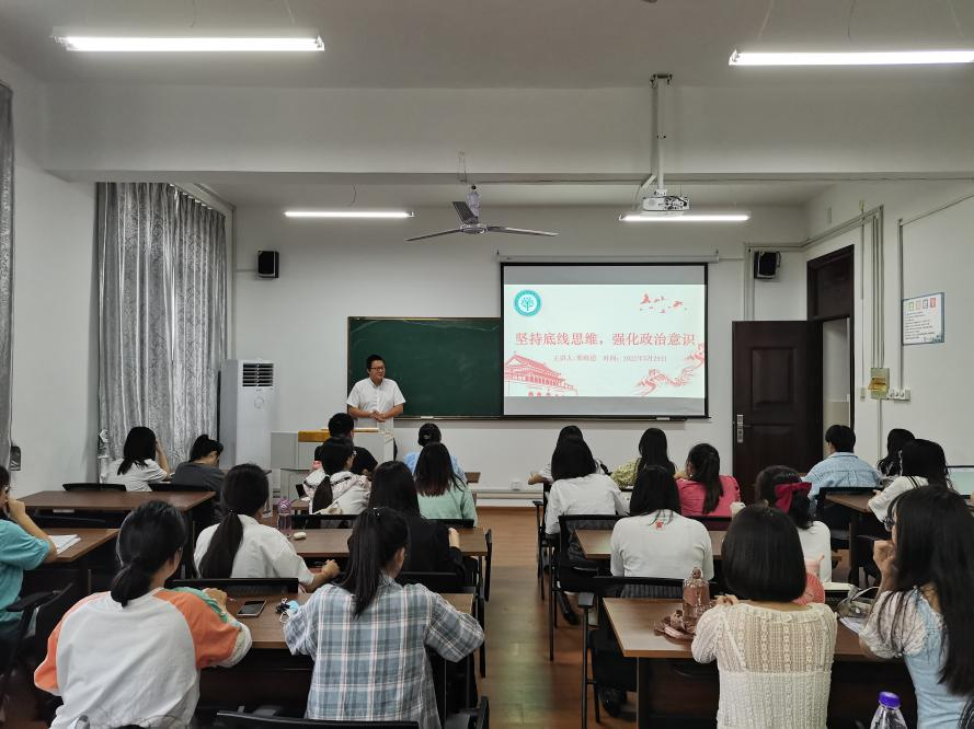 在公法楼205召开“坚持底线思维,强化政治意识”主题团课。院团委书记邢维迢主讲,学院全体团支书参加。