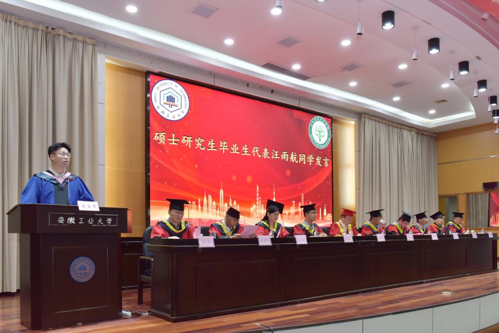 2023届研究生代表汪雨航、本科生代表张兆扬回顾了在校学习、生活的感受,表达了对母校的美好祝愿和对老师的感恩之情。教师代表徐刚寄语毕业生突破自我,再接再厉,取得更大的成绩,为母校争光添彩。