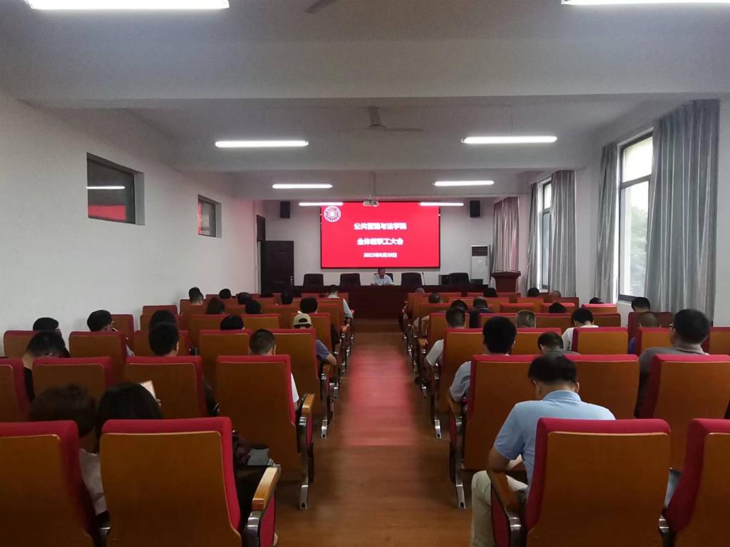 8月28日下午,公共管理与法学院在学院301报告厅召开新学期第一次全体教职工大会,学院党委书记胡正友主持会议。
