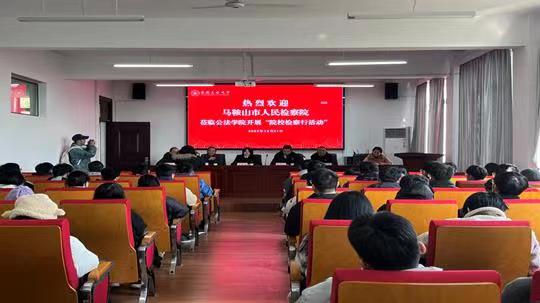 于2023年12月21日在公法楼301举办以检察职能宣讲为主题的“院校检察行”宣讲活动,特邀请马鞍山市检察院政治部主任郝守则担任主讲嘉宾,学院领导、系主任出席了本次活动。