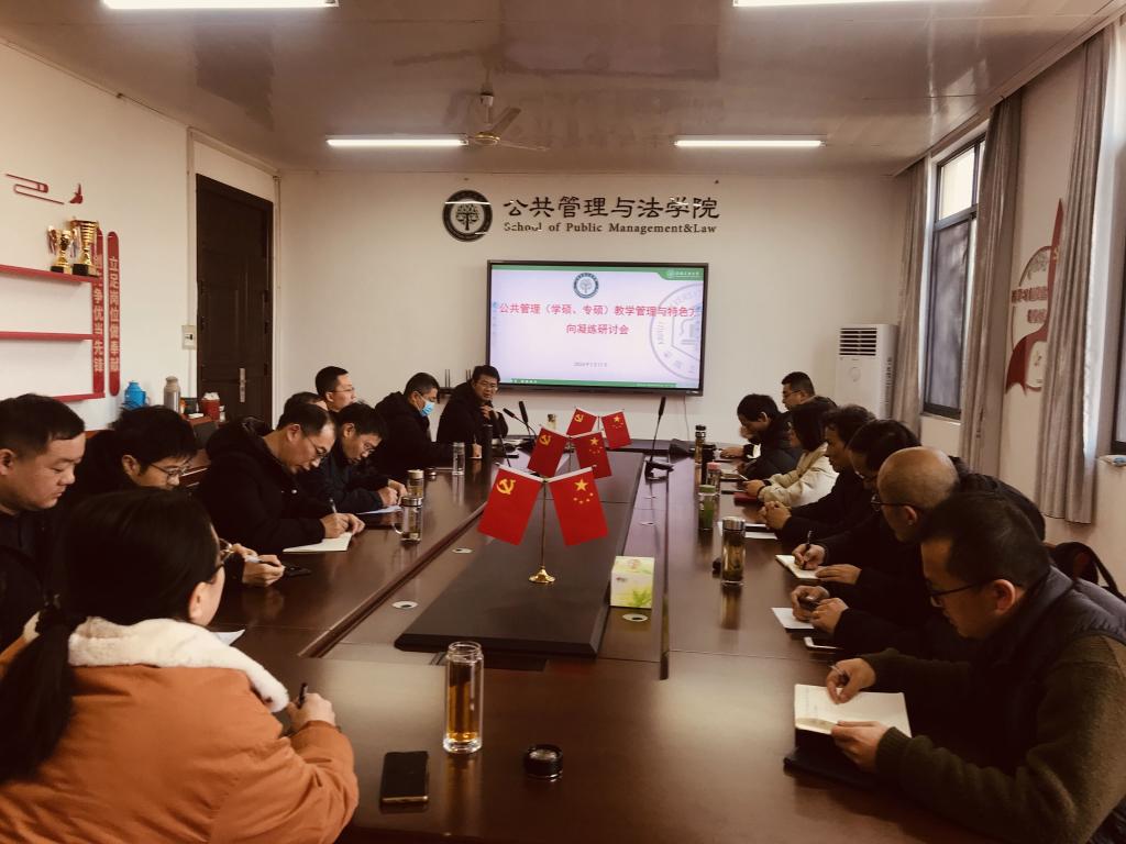 于2024年1月11日上午,在学术交流中心(公法楼402)召开了公共管理专业教学管理与特色方向凝练研讨会。分管领导、学科点负责人、及相关学科专业老师、研究生秘书参加了会议。会议由学院科研副院长杨哲主持。