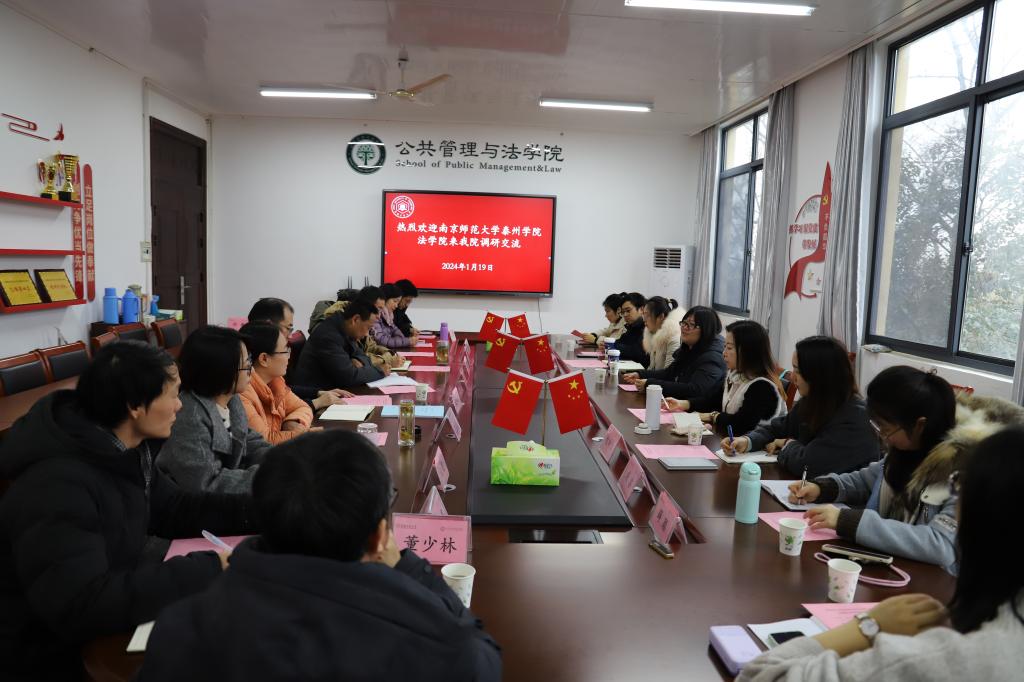 1月19日,南京师范大学泰州学院法学院副院长黄嘉璐、法学教研室主任蔡虹、行政管理教研室主任吴济桃等一行10人来91直播