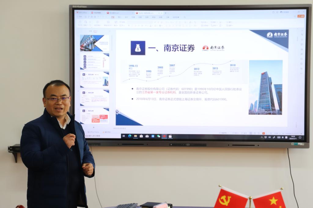 徐华良总经理作了《牵手南京证券一起奔向未来》的招聘宣传报告,介绍了南京证券及南京常府街证券营业部的基本概况、岗位设置、招聘需求及相关程序。徐华良说,南京证券公司对法学和公共管理专业人才都有需求,来安工大91直播