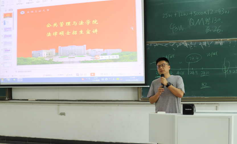 在教三南201教室举行本科生考研深造动员会。院党委书记胡正友,副院长周浩然,王务均,院公共管理学硕士点董少林老师、法律硕士学科点房梁老师,院团委书记朱玲、年级辅导员产兵华,2020级学习优秀奖同学代表和2021级全体同学参加考研动员会。副院长周浩然主持动员会。