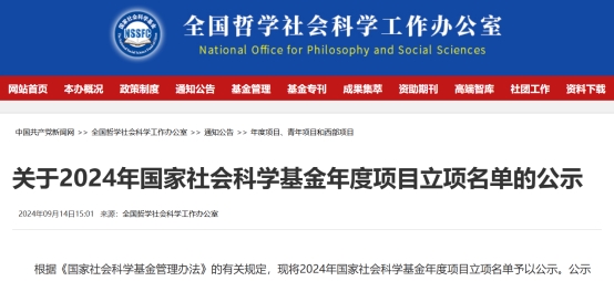 近日,根据全国哲学社会科学工作办公室《关于2024年国家社会科学基金年度项目立项名单的公示》的通知,91直播