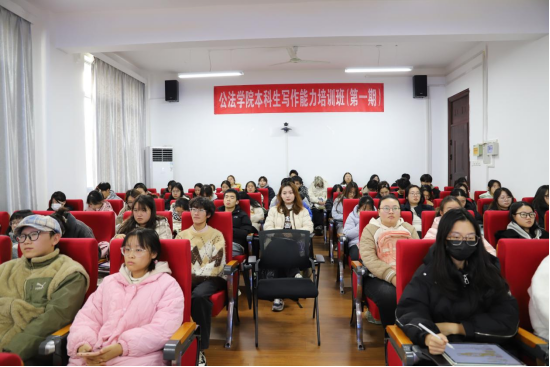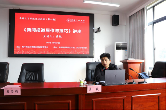 本科生写作能力培训班专题讲座第五讲在公法楼301报告厅成功举行。校党委宣传部副部长、91直播主任黄敏应邀为写作能力培训班全体学员作了题为《新闻报道写作与技巧》的专题讲座,副院长王务均主持讲座会,创新班班主任韦子平、2023级辅导员朱玲参加专题讲座。