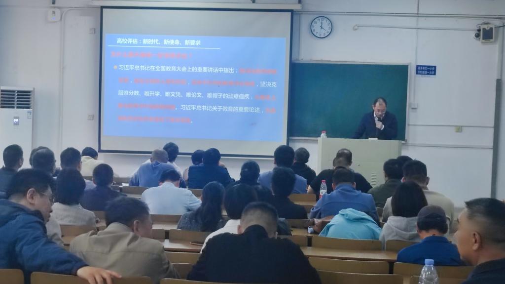 副院长王务均就新一轮本科教育教学审核评估工作作了专题培训部署,重点围绕新一轮审核评估的新变化、迎评材料、专家组线上评估和进校考察流程、本科教学工作相关注意事项等作了详细解读。会议进行了学院教授委员会换届选举工作,选举产生了新一届教授委员会委员。