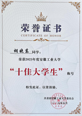 3.校“十佳大学生”:胡晓东