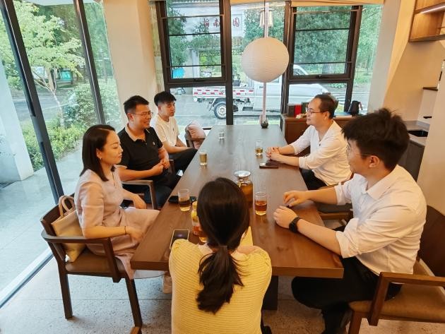 在祁民公社负责人王晓东的引导下,杨哲一行参观了祁民公社文化阵地、产业发展空间、实践平台等,详细了解了该地在推动数字经济、促进数字社区建设、打造数字游民社区示范点等方面的实践探索。王晓东向来访领导和实践队详细介绍了祁民公社的发展历程、运营模式与未来规划,展现了一个由本地资源驱动、多方协同共建的乡村振兴样板。