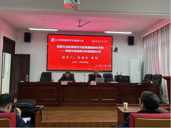 荣休教授、皖江工学院财经学院院长徐德信应邀作学术报告。研究生导师、青年教师,公共管理研究生、法律硕士和创新班本科生聆听报告。法学系邓可祝教授主持报告会。