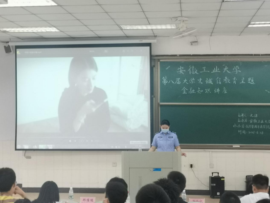 5月28日上午,我校在东校区阶教105开展了“融诚于党,信教于史”诚信金融知识讲座,各学院代表参加,花山公安分局政工科沈洁警官主讲。