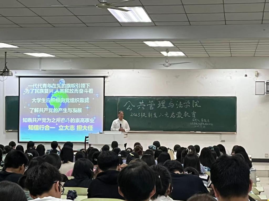 大学生入党启蒙教育是新生入学教育的重要内容,是大学生树立正确的世界观、人生观和价值观的第一堂政治课,也是引导和增进新生爱党爱国的重要途径。9月25日,公共管理与法学院专门邀请蔡保兴教授为2023级全体新生开展入党启蒙教育,活动取得了圆满成功。