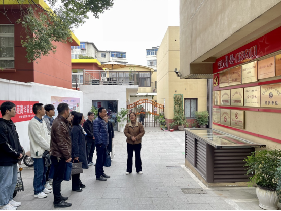 中爱智慧养老服务中心负责人杭胡迪热情接待了学院师生一行,带领大家参观了党建文化墙、老年人活动室、社区食堂等,并详细介绍了智慧养老服务事业的发展情况,以及坚持“党建引领、为老服务”的工作成效和实践经验。