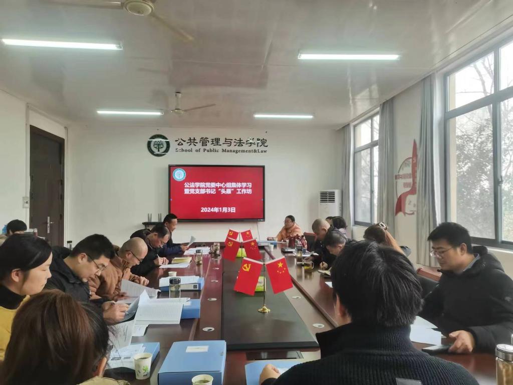 1月3日,公共管理与法学院在学院402会议室召开党委理论学习中心组2024年第1次学习(扩大)会暨党支部书记“头雁”工作坊,学院领导班子成员、党委委员、纪委委员、各党支部书记、组织员、系(室)负责人、办公室工作人员及学生代表参加了学习及活动,学院党委书记胡正友主持活动。