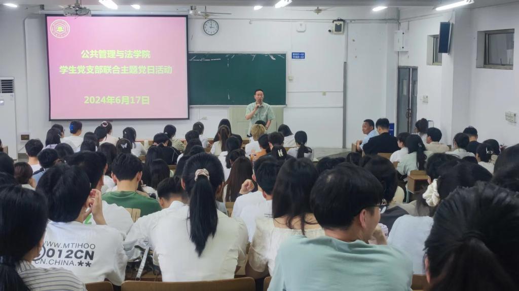6月17日下午,公共管理与法学院学生党支部在佳山校区二号教学楼207教室,联合举办“宣誓词、讲纪律”主题党日活动。学院党委书记胡正友,党委副书记、纪委书记、副院长周浩然,党委秘书周彩霞,各学生党支部全体师生党员参加活动。活动由周浩然主持。
