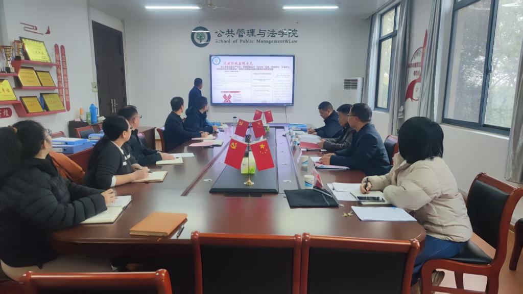 12月10日下午,校党委党建督查第一督查组组长、校党委书记陆林带领督查组成员一行4人至公共管理与法学院督查指导学院2025年基层党建工作。学院领导班子成员、组织员、师生党支部书记代表参加督查汇报会。学院党委书记胡正友主持会议。