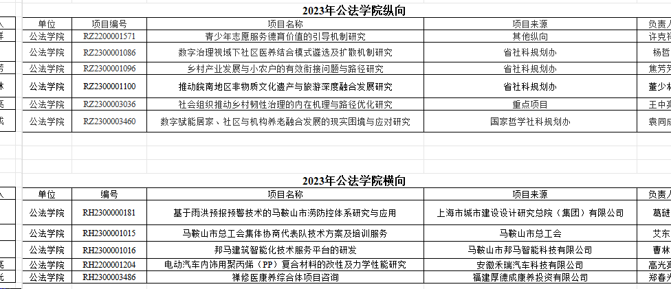 公共管理与法学院科研项目(2023纵向和横向)