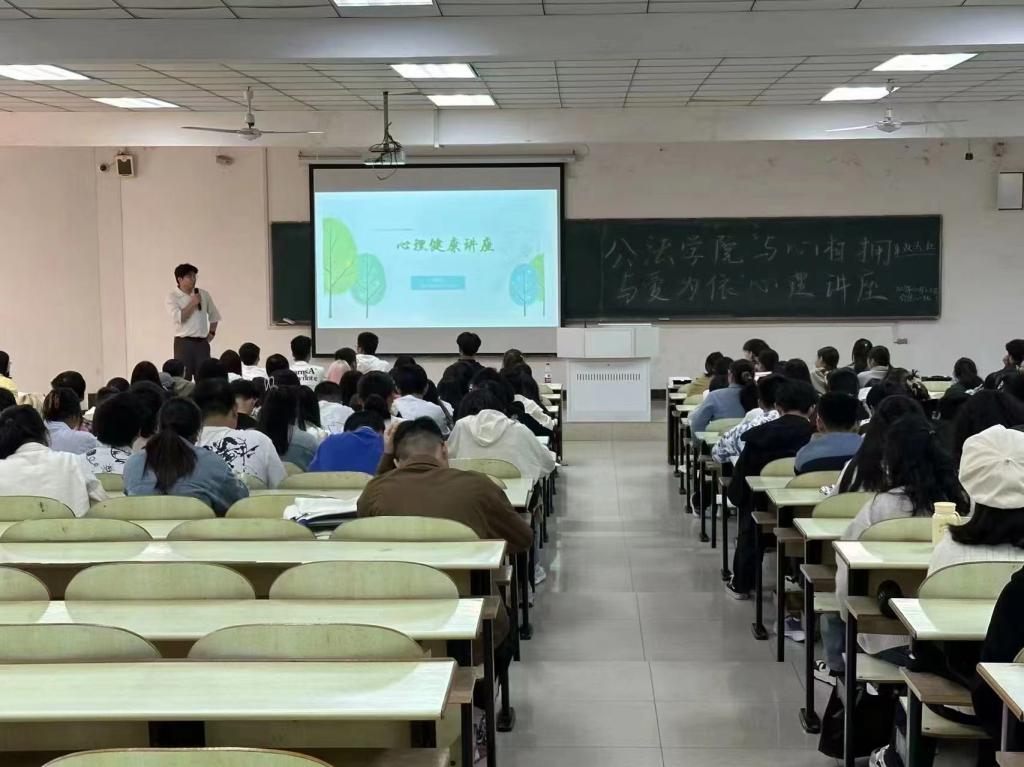 为做好学院秋季学期大学生心理健康教育工作,帮助2023级新生提升心理健康素养,更好地适应大学新生活,10月22日下午,公共管理与法学院心理工作站在本部教三南103教室开展新生入学适应心理健康讲座。讲座由钱前老师主讲,2023级全体新生、学生会干部、各班级心理委员参加。