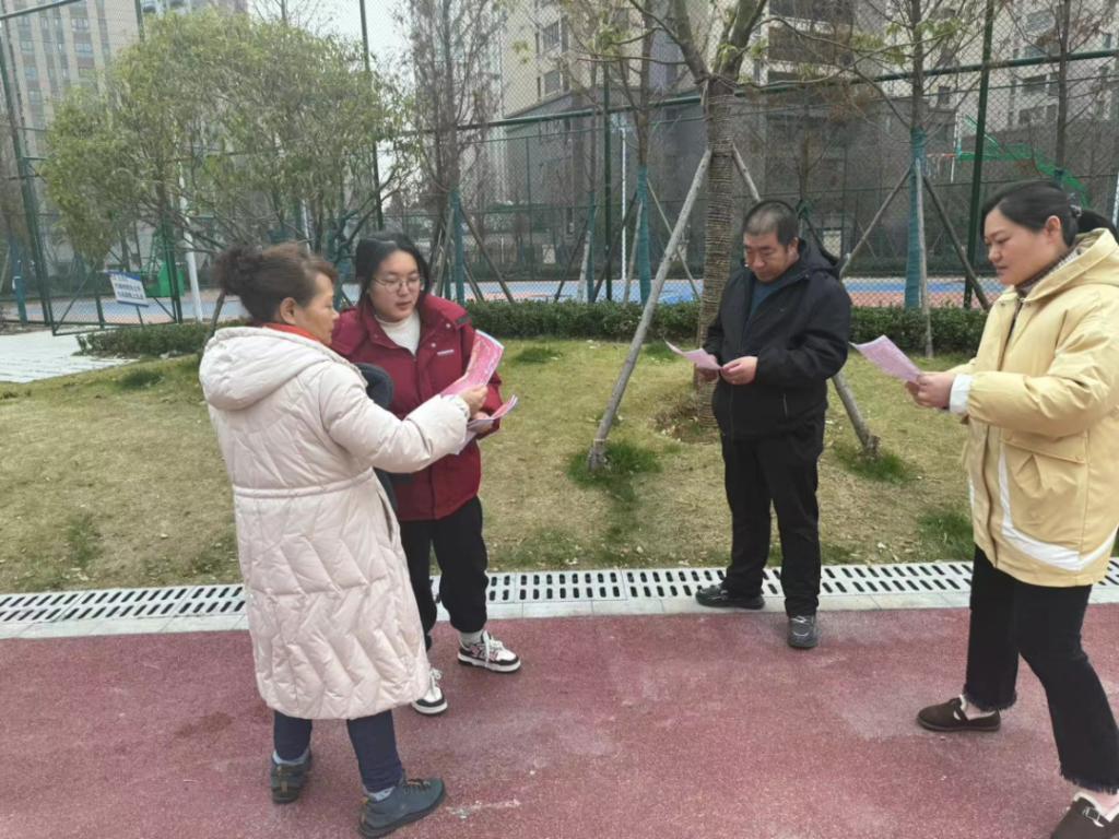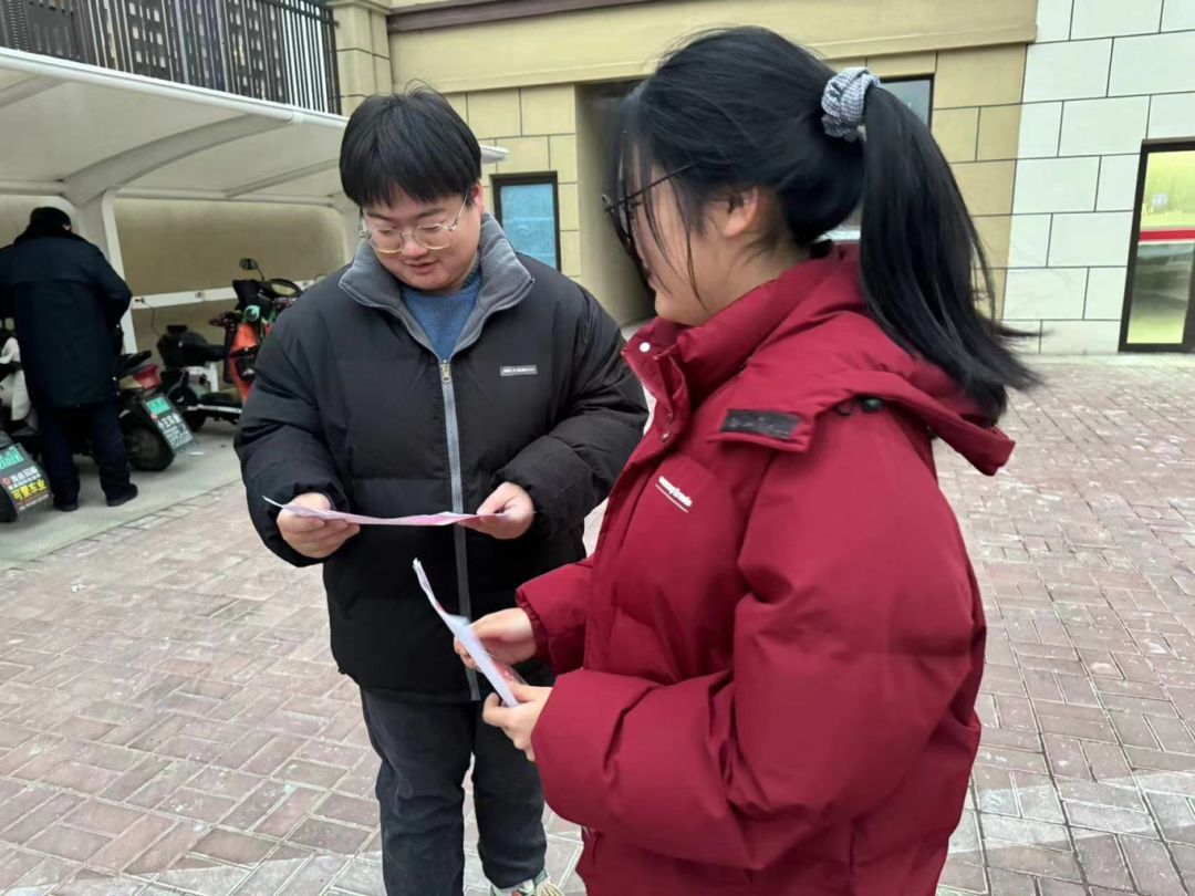 (图为团队成员在小区内为居民发放并讲解传单)