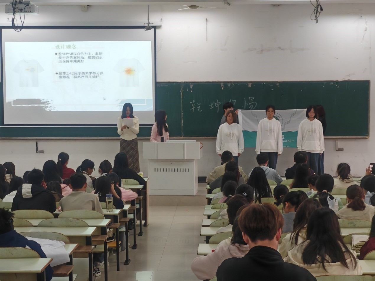 本次活动由陈思彤与汪光耀担任主持人。在主持人的引导下,各班级活动展示人有序进场,解说者身着班服进行幻灯片展示,并介绍班徽、班旗、班服的主图案和寓意。参赛选手们运用走秀、唱歌、舞蹈等多种形式展现班级独特的风貌和精神。同学们在现场恣意发挥想象力,表现了出色的设计能力与创新精神。选手们凭借一次次与观众及评委间的精彩互动,成功将活动现场的气氛推向了高潮。