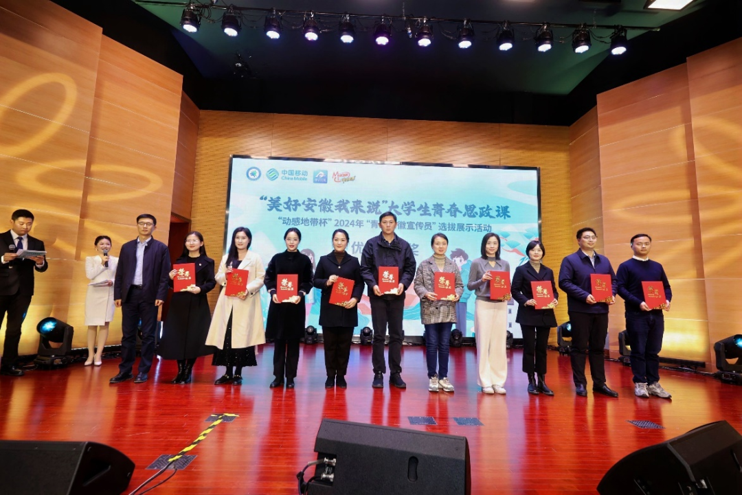 11月28日,“动感地带杯”2024年“青春安徽宣传员”决赛选拔活动在中国科学技术大学拉开帷幕!经过激烈的比拼,共评选出十位青春安徽宣传大使。其中,我校商学院2022级财务管理专业的陈乙绮、公共管理与法学院2024级法学专业的朱宇荣获“青春安徽宣传大使”称号,我校获优秀组织奖。