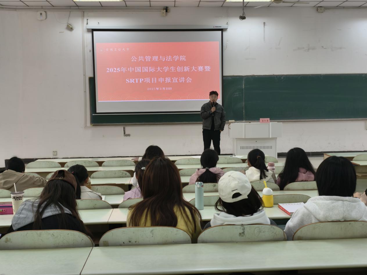 为进一步激发学生锐意创新、迎接挑战的精神,培养和锻炼学生创新创业意识与实践能力,积极备战创新创业重要赛事。3月31日,公共管理与法学院在佳山校区教三南203开展公共管理与法学院2025年中国国际大学生创新大赛暨SRTP项目申报宣讲会。公法学院实验实训中心主任、硕士研究生导师宫仁贵、院团学工作负责人钱前出席,各年级共200余学生参加。