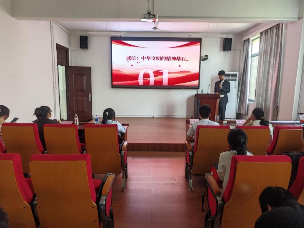 演讲比赛精彩纷呈,参赛选手们紧扣“诚信”主题,以自身经历为切入点,围绕践行诚信、传递诚信展开演讲。选手们用生动的故事、真挚的情感,展现了新时代大学生对诚信的坚守与追求。声情并茂的演讲引起在场观众的强烈共鸣,现场掌声不断,充分彰显了诚信在当代大学生心中的重要地位。