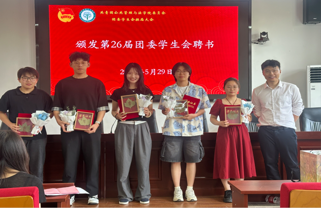 第26届院团委学生会各部门负责人依次对院第27届团委学生会成员发表寄语,分享了工作心得与感悟,并表达了对新一届学生会的祝福与期待,鼓励新成员们团结协作,积极进取,在未来的工作中再创佳绩。新一届学生会成员表示将不负重托,以饱满的热情和务实的态度投入到工作中,为学院师生提供更优质的服务,推动学院团学工作再上新台阶。大会还为第26届院团委学生会各部门负责人颁发聘书,并由新一届各部门负责人献花。