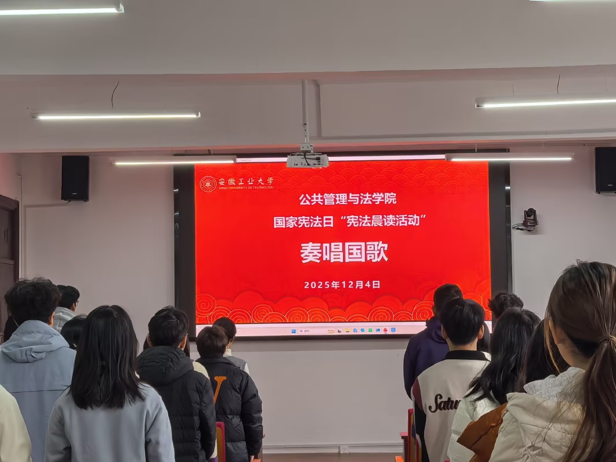 为深化青少年宪法法治教育,全面落实习近平法治思想、习近平总书记关于教育的重要论述和全国教育大会精神、教育系统“八五”普法规划要求,公共管理与法学院于2025年12月4日在佳山校区公法楼301开展国家宪法日“宪法晨读”活动。公共管理与法学院党委副书记、纪委书记、学工副院长周浩然,公法学院团委书记钱前,公法学院2025级本科生辅导员王秋丽出席活动,学院各专业共70余名学生积极参与本次晨读活动。