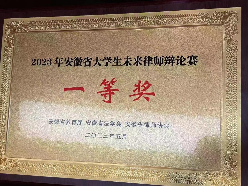 2023年安徽省大学生未来律师辩论赛于5月26日—5月28日在安徽省六安市皖西学院举行。该赛事由安徽省教育厅、安徽省法学会、安徽省律师协会主办。安徽省本科高校法学院(系)共有21支代表队参加了此次辩论赛。安徽工业大学公共管理与法学院组队参加了比赛。经过初赛、复赛、决赛,安徽工业大学代表队勇夺季军,并荣获一等奖。这也是我校参加此项赛事以来获得的最好成绩。陈韬宇同学在多场比赛中获优秀辩手。